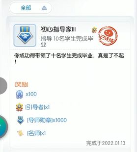 其中获得10名学生毕业,可以获得 引导者称号,并得到名师标签;