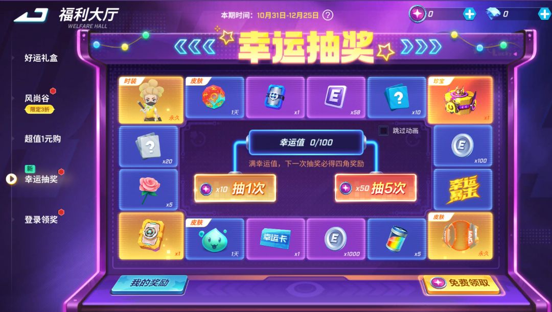 抽到非四角上的奖励会累计一定幸运值!幸运值满时必中四角奖励~
