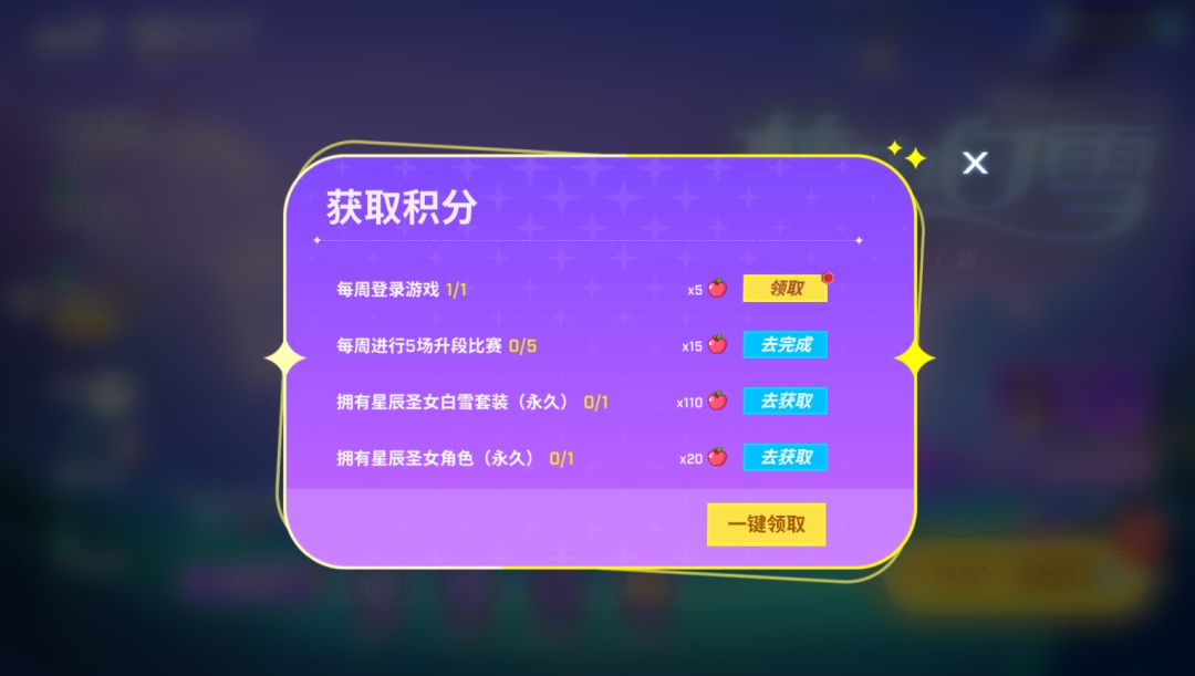 同时,完成以上任务即可获取对应数量的苹果积分,累积一定数量的苹果就获得对应的奖励啦~