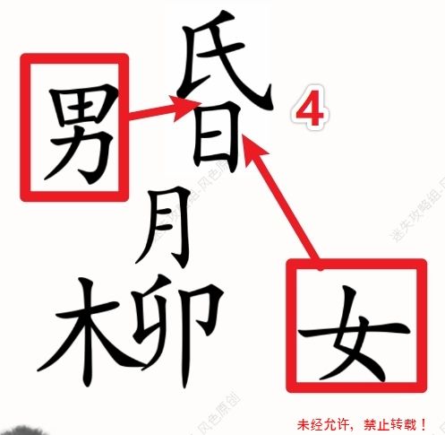 37.最后将男字和女字都移动到昏字的后面即可通关。37
