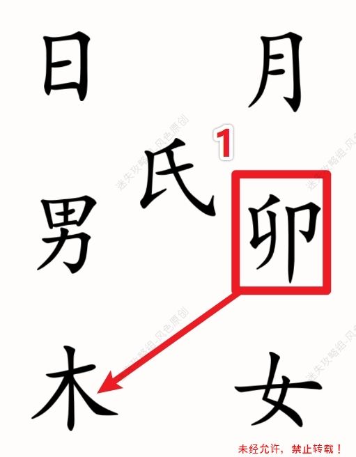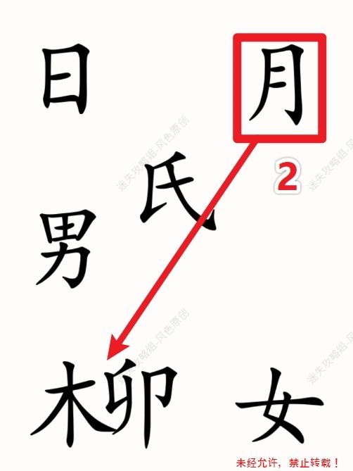 34.如下图所示,首先将卯字移动到木字的右方,组成柳字。34