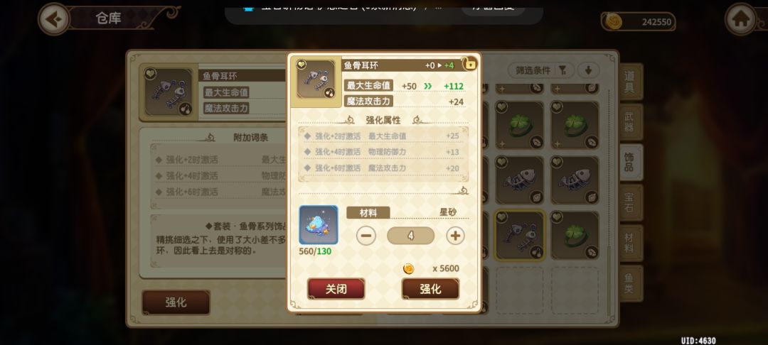 不难看出饰品分解返还的星砂为升级消耗的0.8倍(就是金币没啦)且不会因为强化等级而变