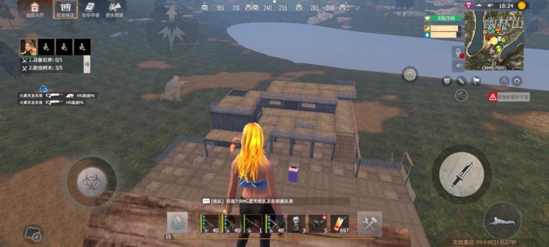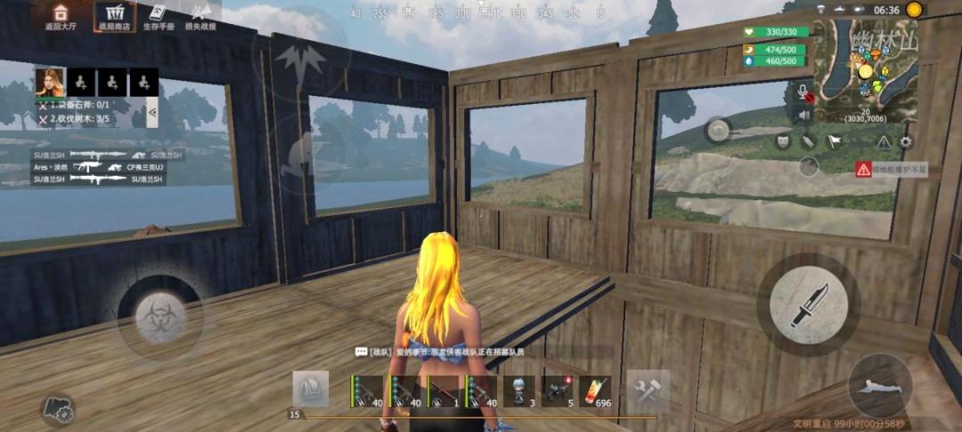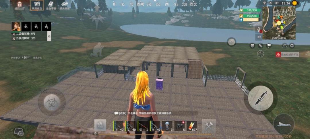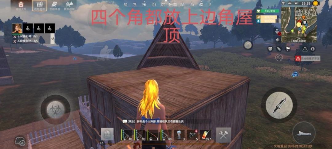 再把二楼都铺上天花板,重样的步骤,咱们把小炮楼建到三楼,在第三楼把周围的墙壁全部都改成窗户