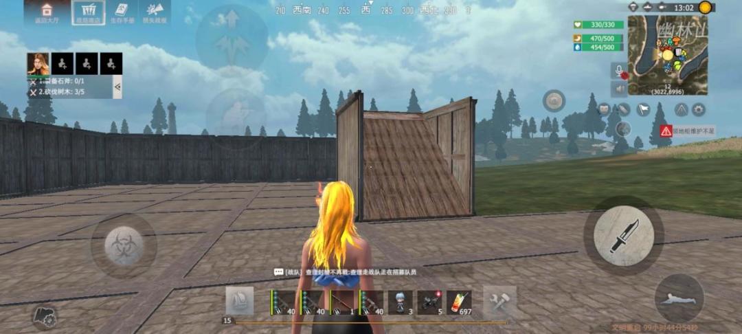 接着,小伙伴们在小亭子正前方的位置,建造一个2×2的小炮楼