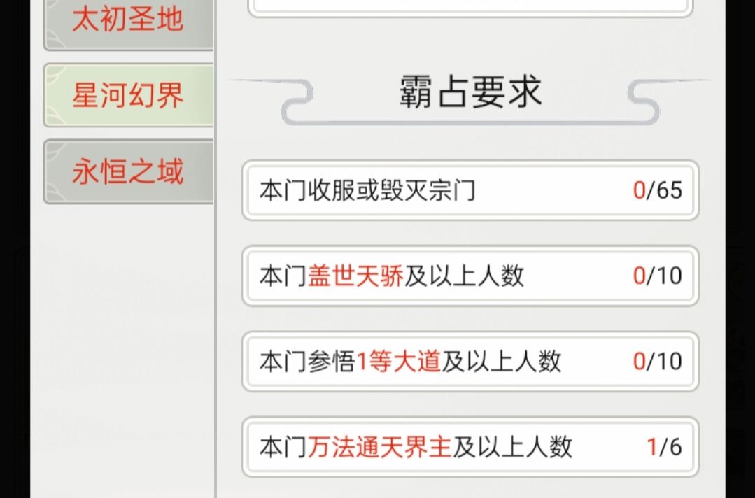 18.一品宗门以上部分宗门势力战力异常恐怖!请各位发展自己的宗门,以防御后期的入侵。
