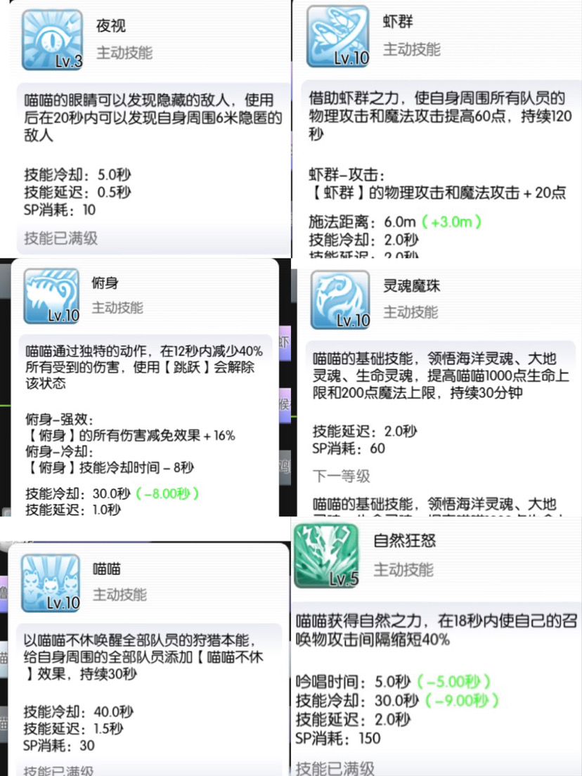 其他的一些buff技能可以直接丢进备战精英里面一起放十分方便,喵喵附加15%魔法伤害自然狂怒缩短40%攻击间隔也都是明显的增伤buff ,夜视可以使你在回廊能够看见隐匿的小怪和奴役的鬼火,不用再去费劲找啦~