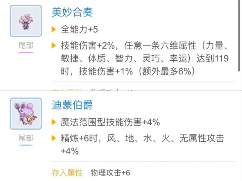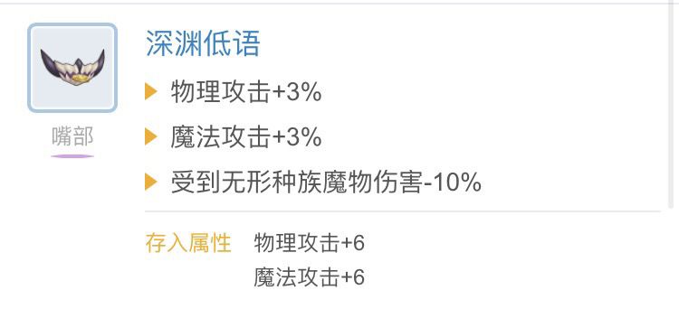 嘴部我的选择是MVP增伤,因为法系职业普遍都缺这个属性,MVP增伤因为太少,所以基本没啥稀释度,提升比较大,还的眷恋作为以下几个嘴部扭蛋最年轻的一个,也是最强的一个。
