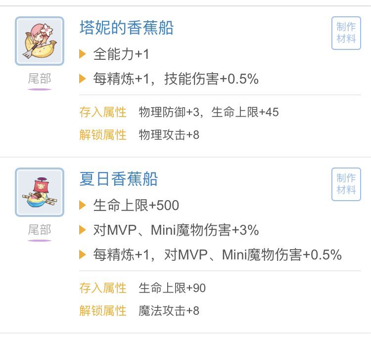 如果两种香蕉船精炼等级够高的话其实也挺强的,其他的只能说是没有扭蛋的替代品,只是凑合用的 ,效果不会太好。