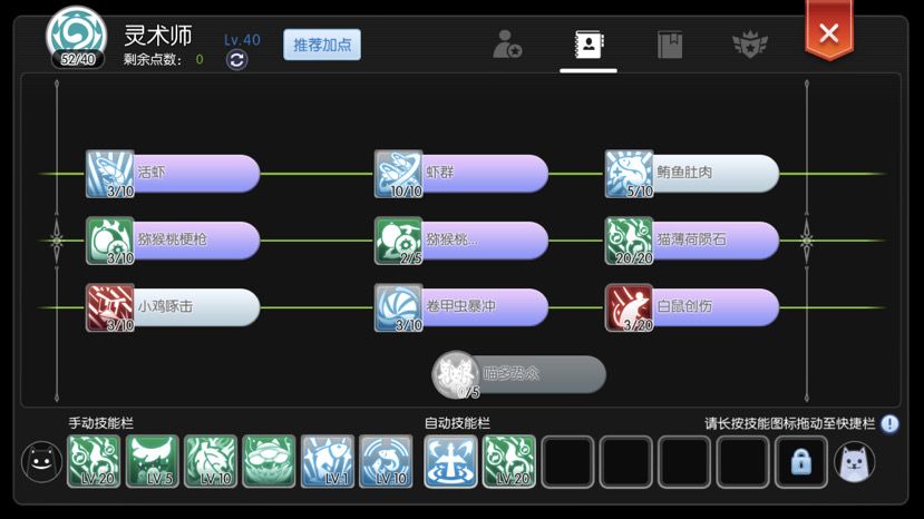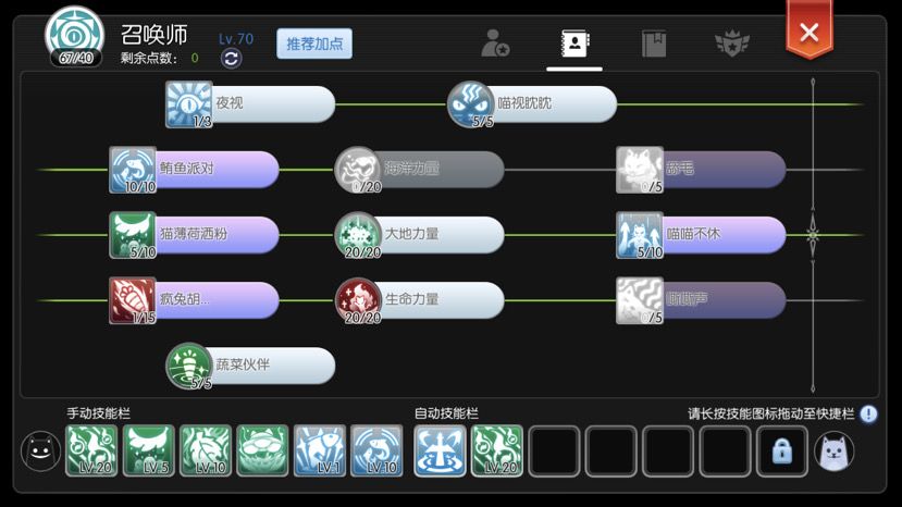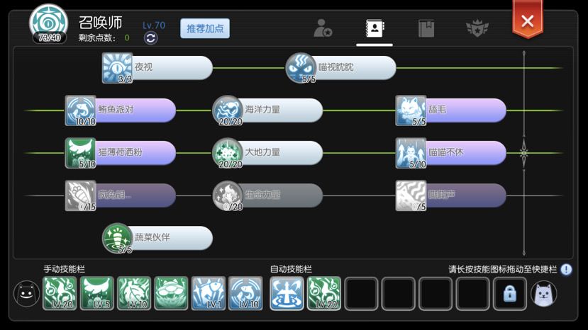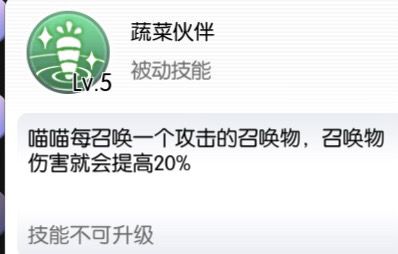 目前法猫有两套技能加点,一是点 蔬菜系+动物系,该方案的主要特点就是血量多