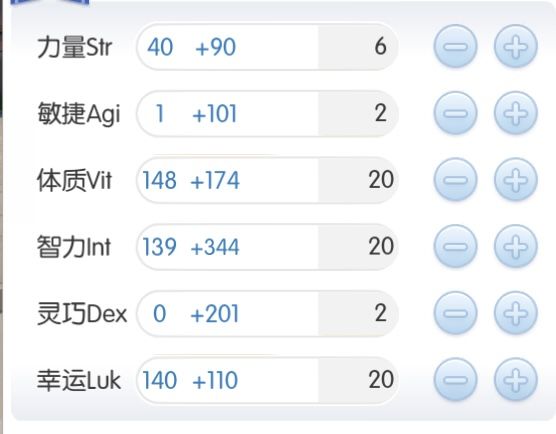 法猫的六维加点与多数法系职业基本相同,如图所示