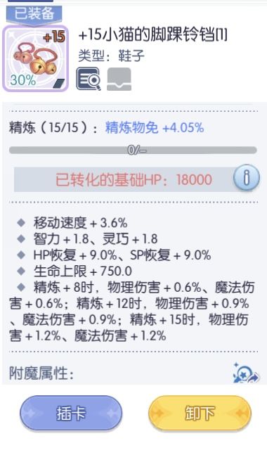 鞋子的话并没有什么好的推荐,如果有猫卡当然挺好可以在吃鱼干的时候防止减速提高灵活度,没有的话就随便啦,绿贝勒斯卡片增加10%HP,蝙蝠星卡增加3%魔攻都是可以选择的。