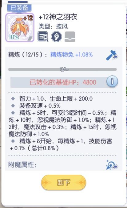 随着影子进度50%的开放,两个胸针就可以加10%破防9%魔法穿刺,也是很可观的提升,至于为什么不用魔攻鲜花,因为法猫的技能倍率很低,魔法攻击的收益不太高,不如追求像穿刺魔法伤害这样的提升。