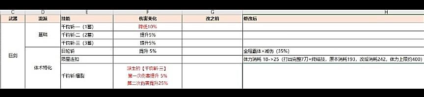 首先我想知道,既然大剑这个红色流派叫做体术特化,不就是应该专注于各种动作而非伤害吗?结果修改以后变成了增加伤害数值,降低动作值。