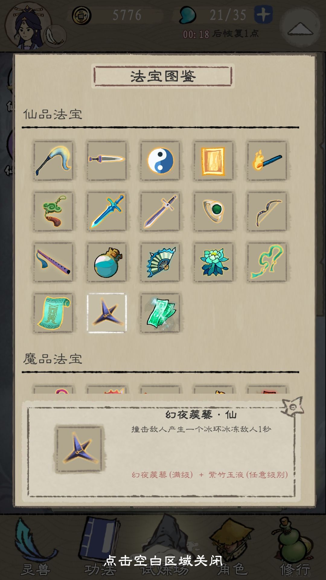 最新法宝合成表,新的仙品法宝很菜,魔品的四个烛灵效果可以重叠,有且只有四个。在攻速点满的情况下,幽命匕首魔最快,三昧火符魔第二,烧火棍魔和诛仙剑魔差不多。