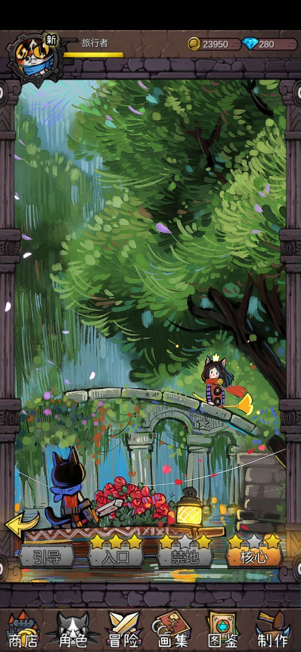 而和爬塔式的固定数值RPG有所区别的是,这款游戏中采用的竟然是闯关式的设计,一个章节被分为多个部分,每个部分有固定的通关条件,完美达成这样的通关条件,能获得三星等。