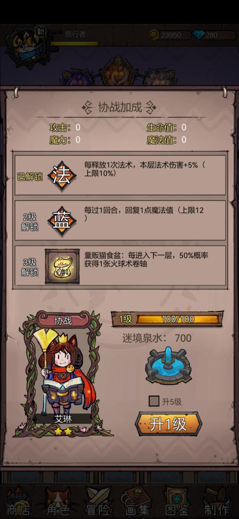 在笔者看来,《卡牌迷境》和《魔塔》的设计,有一定程度的共通之处,但是难度却相对降低了不少:游戏中的战斗设计上,选择了《魔塔》类似的直接攻击怪物造成伤害的设计,和回合制可能需要多次攻击,才能执行完最终伤害判定的设计相比,这样简直太舒服了。而闯关局内角色的成长性上,这款游戏也不无意外加入了击杀怪物获取魂石和经验这样的设计。在角色养成上,单个角色不仅可以在局内战斗中进行升级,还可以借升级选择相应的神器,对你的战斗产生极大的加成效果。