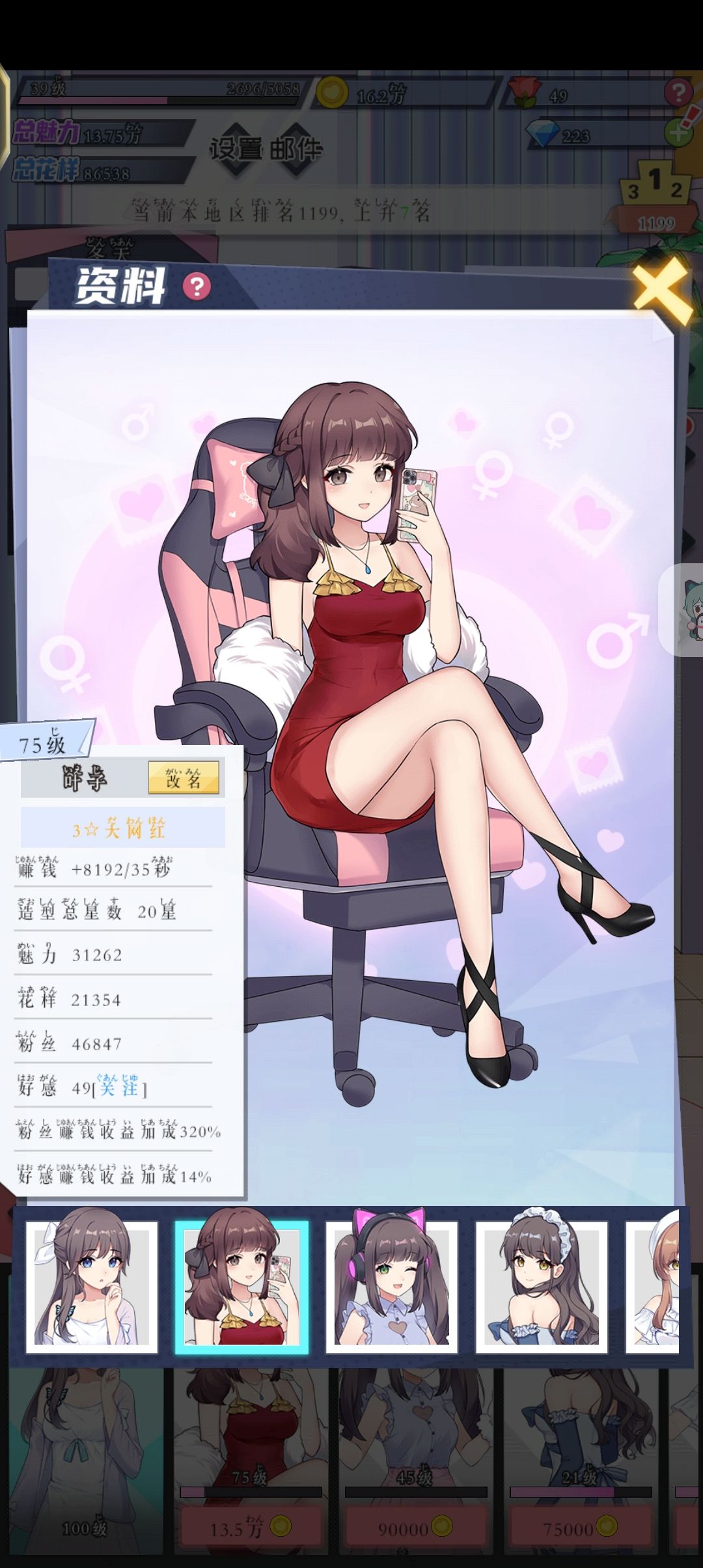 这边呢,建议新上手的人嗷,先追第一位,然后把经济拉满,广告能看就看,进程绝对不会慢😌