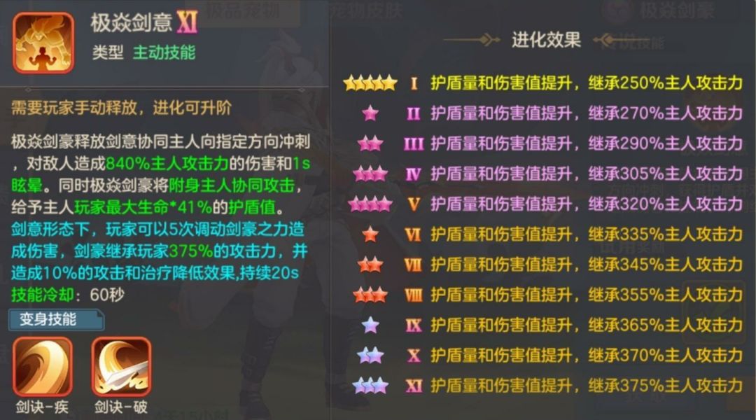 极焱剑豪作为第四个出来的精灵兽,现在已经是稳坐主战三大精灵兽之一,极焱剑豪主输出爆发,说到运用方面,我们先回顾一下极焱剑豪的主动技能:
