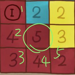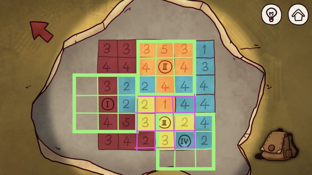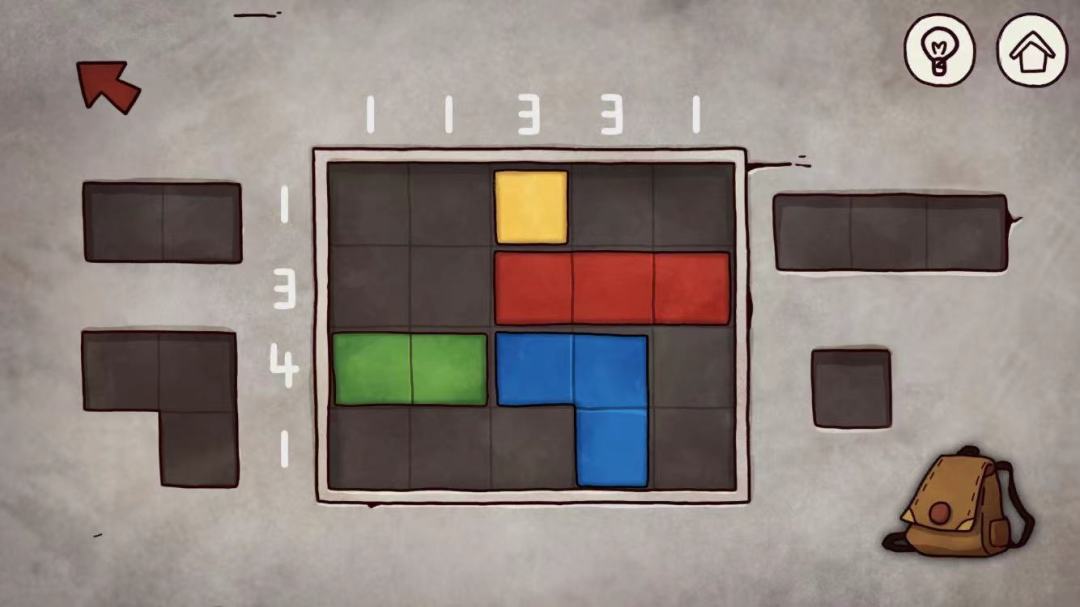 类似于扫雷的玩法,九宫格中间的数字代表在周围中有几个相同颜色的方块。