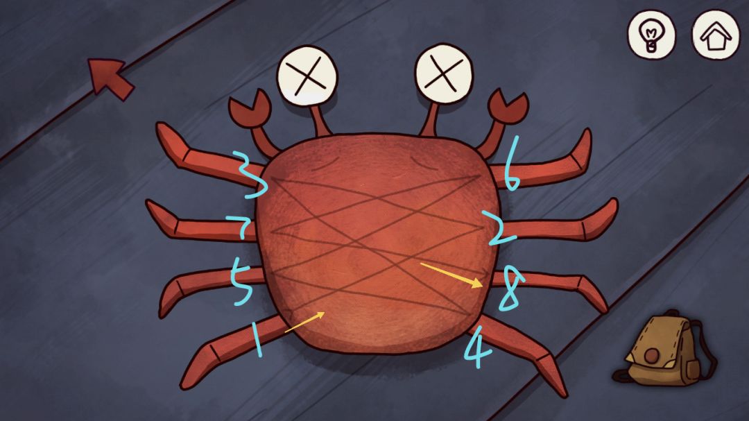 点击螃蟹,通过面上剪头的方向按顺序点击螃蟹腿,即可打开。