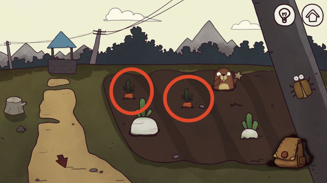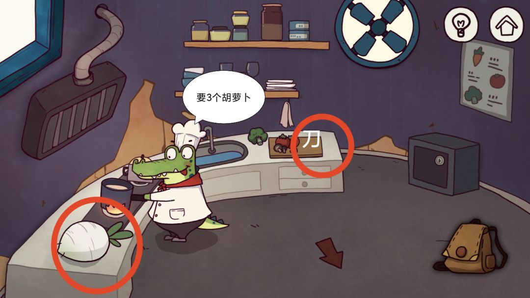 (不好意思,手点太快了,刀被我直接点掉了…重置了一次,萝卜被我点掉了…)