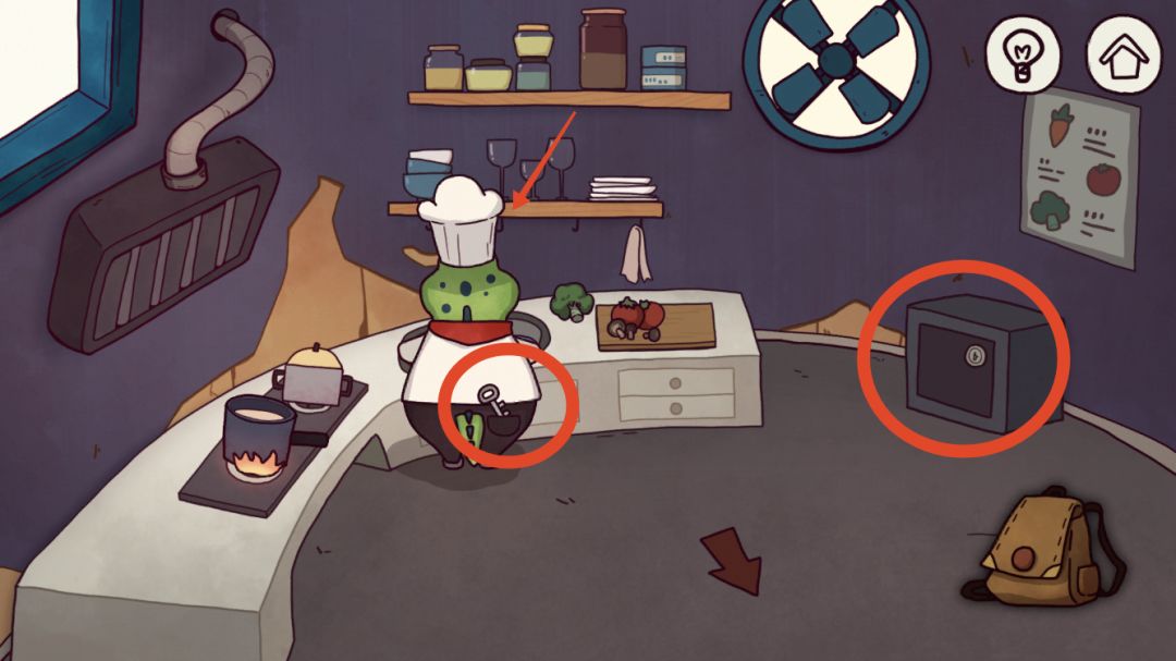 做饭转身后,点击背后的钥匙,打开保险箱,拿门禁卡