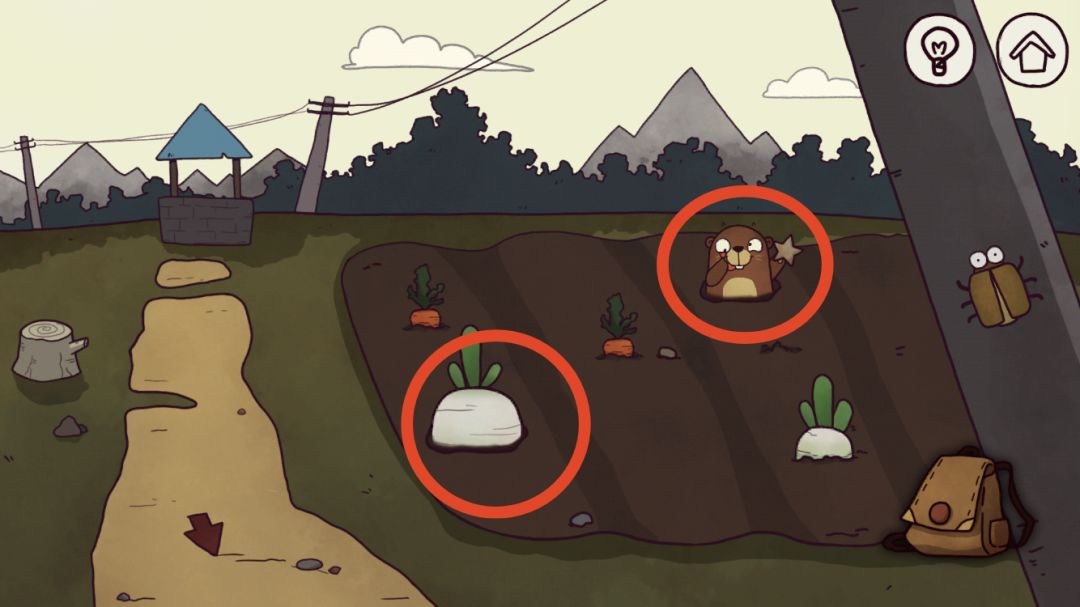 观察鼹鼠手中是否有星星,没有星星点一下,出现星星后,将萝卜放在空的洞里。