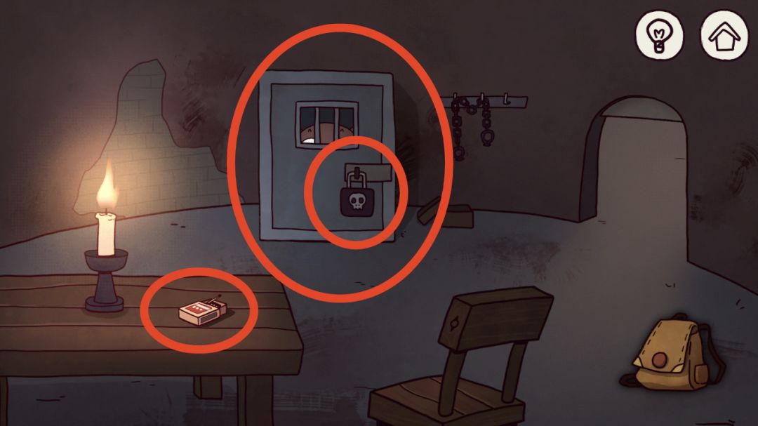 用骷髅钥匙打开门锁,用刀隔开绳子