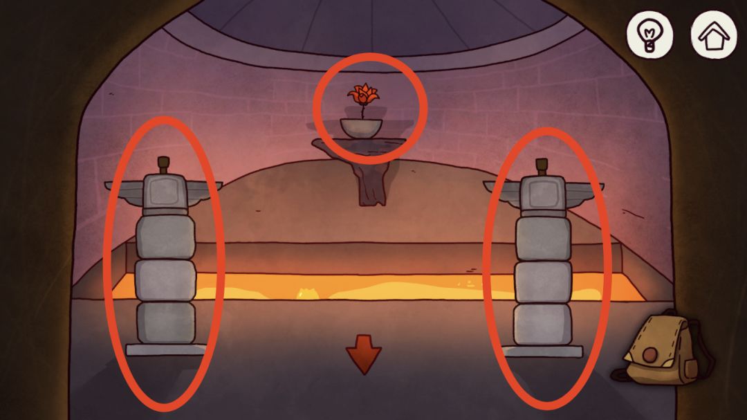 大门上的图案和左边场景底座上的图案有关联,底座上的雕像便是解密的关键