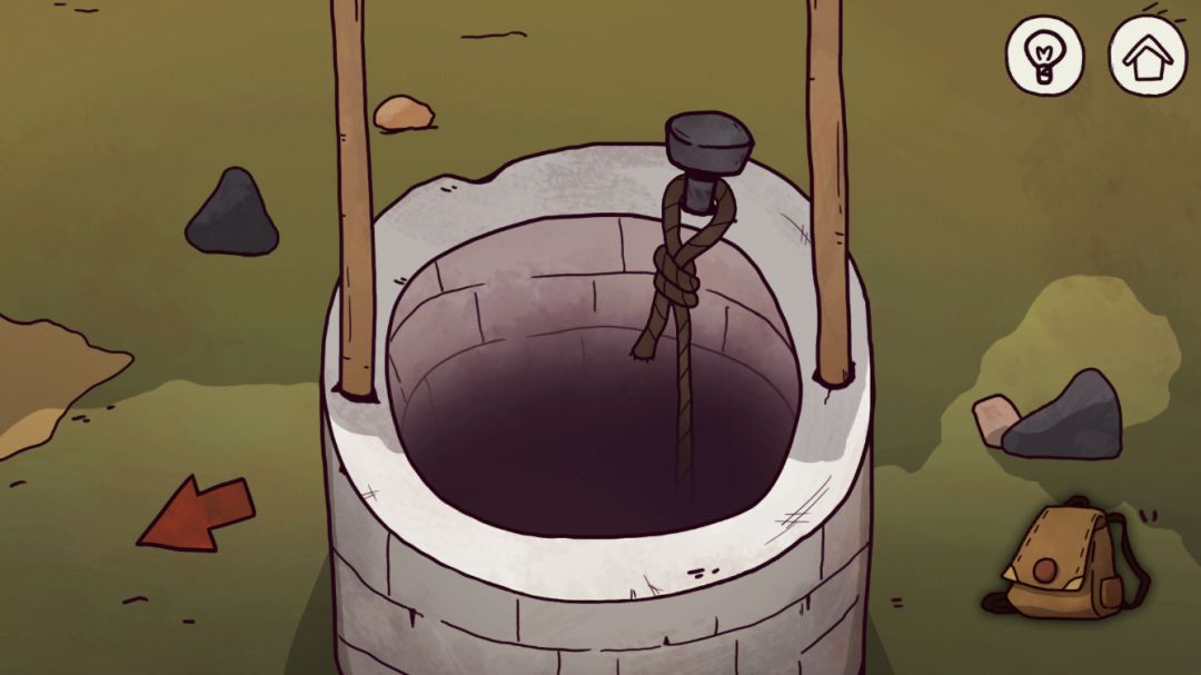 到农田位置,点击井,将绳子绑到钉子上,点击绳子下去。