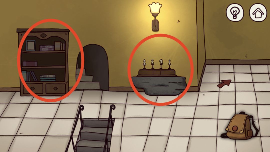 先点击书架,点击书架下层右边的书,会出现暗格,点击暗格。