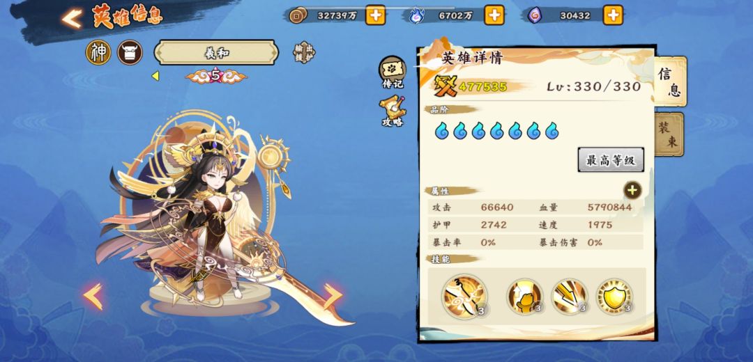 基础1975的速度,让其能够比最近的硬控诸葛和师师都快。基础接近600万的血目前也是所有武将中最高的,所以羲和面板还是很硬的。