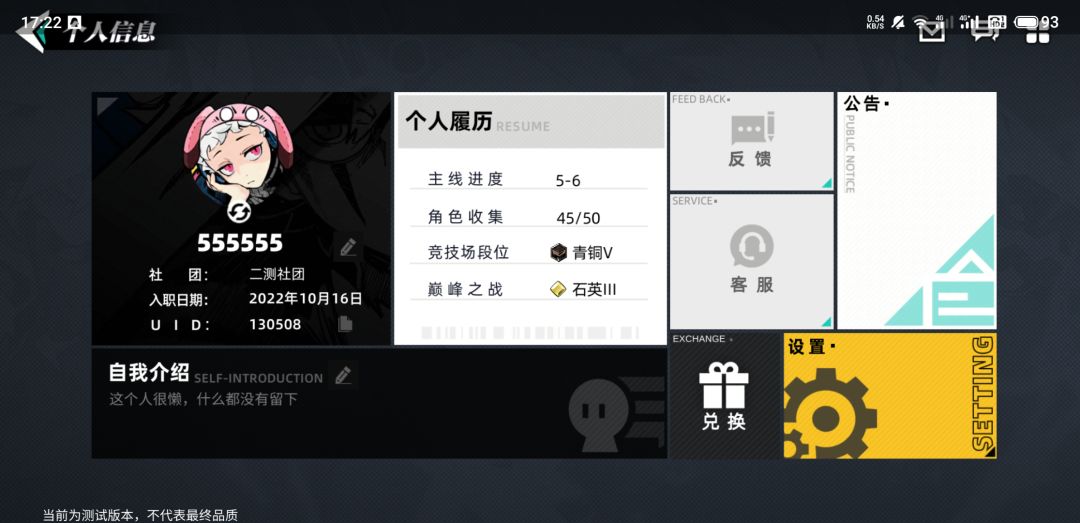 2、诚然,我这几小时可能真的是肝了,但在官方测试服,我能一天达成这样,我也知足了。花了快500w金币?聊天还好,大家都还活跃,可能游戏还新鲜,但社交和好友系统真没用,看了其它玩家写的评价,助战确实可以考虑加一下,一来好友间本来可以聊天,增加互动,二来可以降低养成难度和提高游戏体验,对于社团我不感兴趣,社畜工作日的话真的没时间打理这么地方。