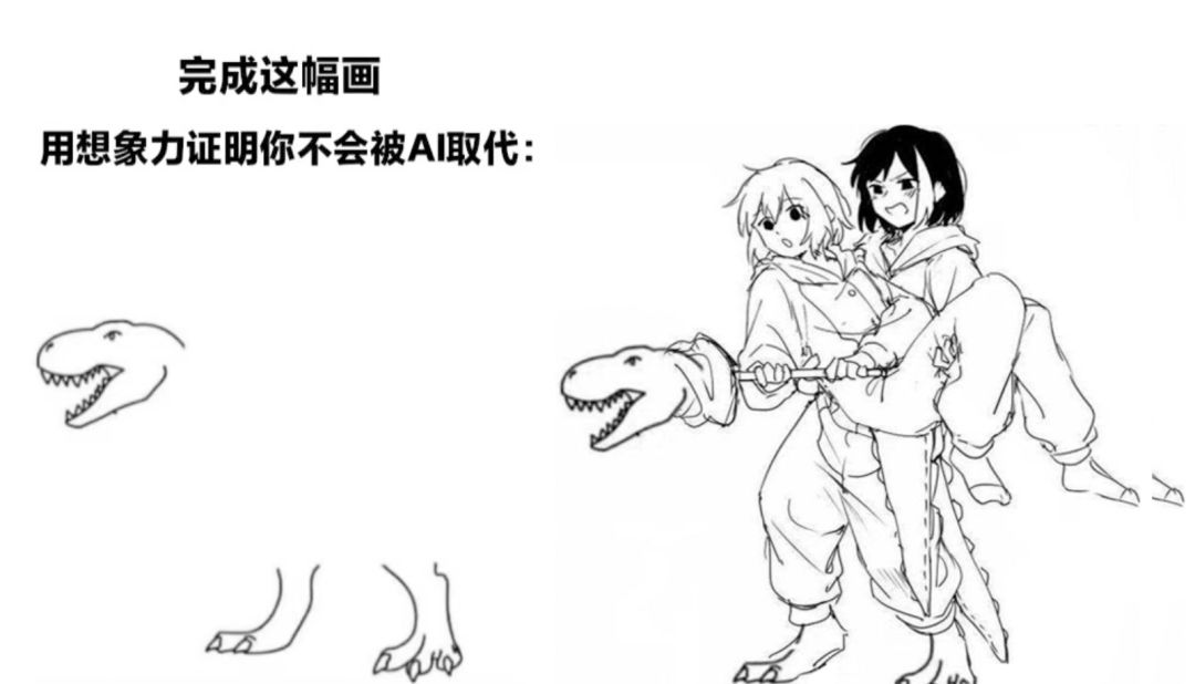 关于AI绘画与真人画师的矛盾,这几天风波不断。而前两天,网友奇思乱想吧发起的“完成这幅画,用想象力证明你不会被AI取代”活动里,涌现了各路高手的大作,他们不拘一格,尽情发挥灵魂画功,用魔法去打败魔法。