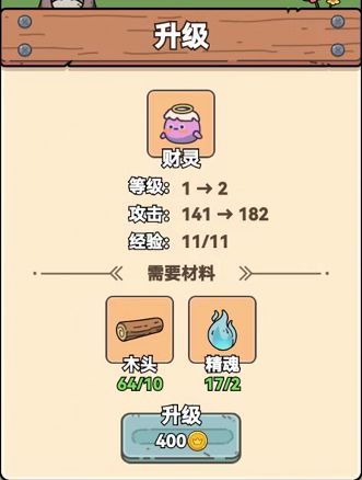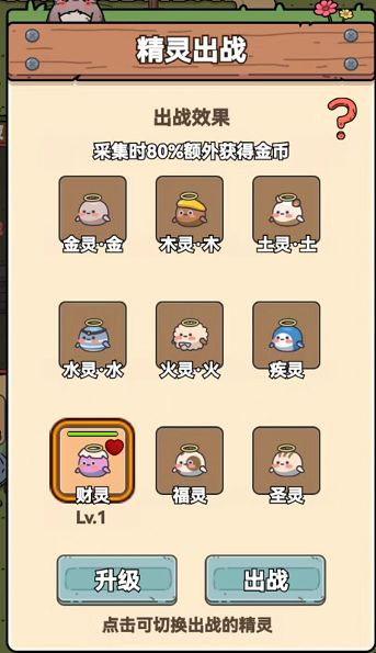 7.精灵打怪经验满了,需要去精灵树手动升级。在精灵树,打开出战界面,选择要升级的精灵,再打开升级界面就能升级。经过测试,只要带着精灵,有怪物死亡,精灵就能涨经验。这样其实就可以去野外地图带宝宝刷刷经验了。