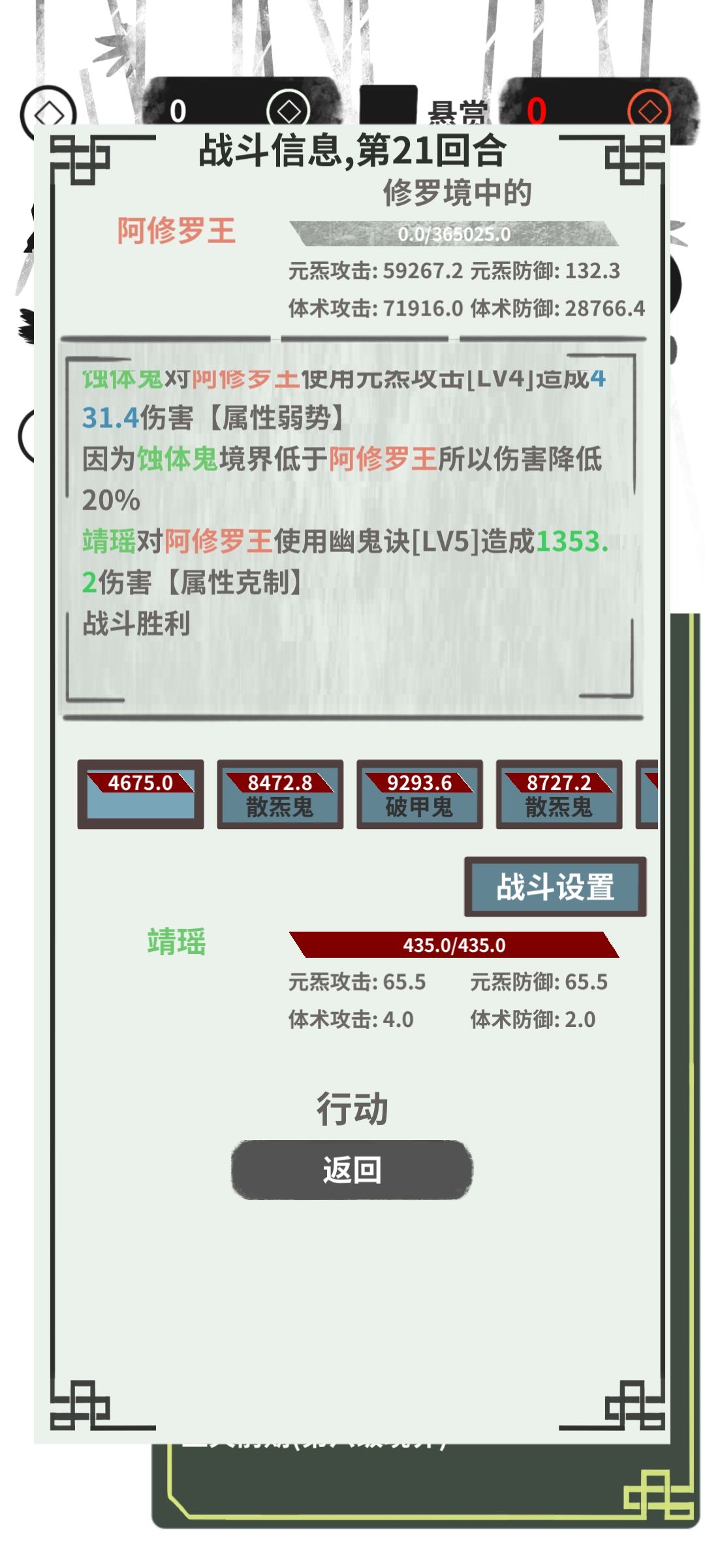 加入万鬼宗,等级已经不重要了,你的好兄弟散炁鬼为你的修仙之路保驾护航。100灵力入阴(一阶)的你也可以战胜最后的修罗王!