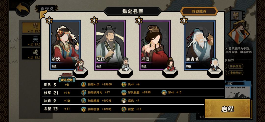 现送礼吴国然后妺喜debuff再攻打吴国用陆压defuff用郦拴住越再解忧出使然后k掉吴国(还在尝试