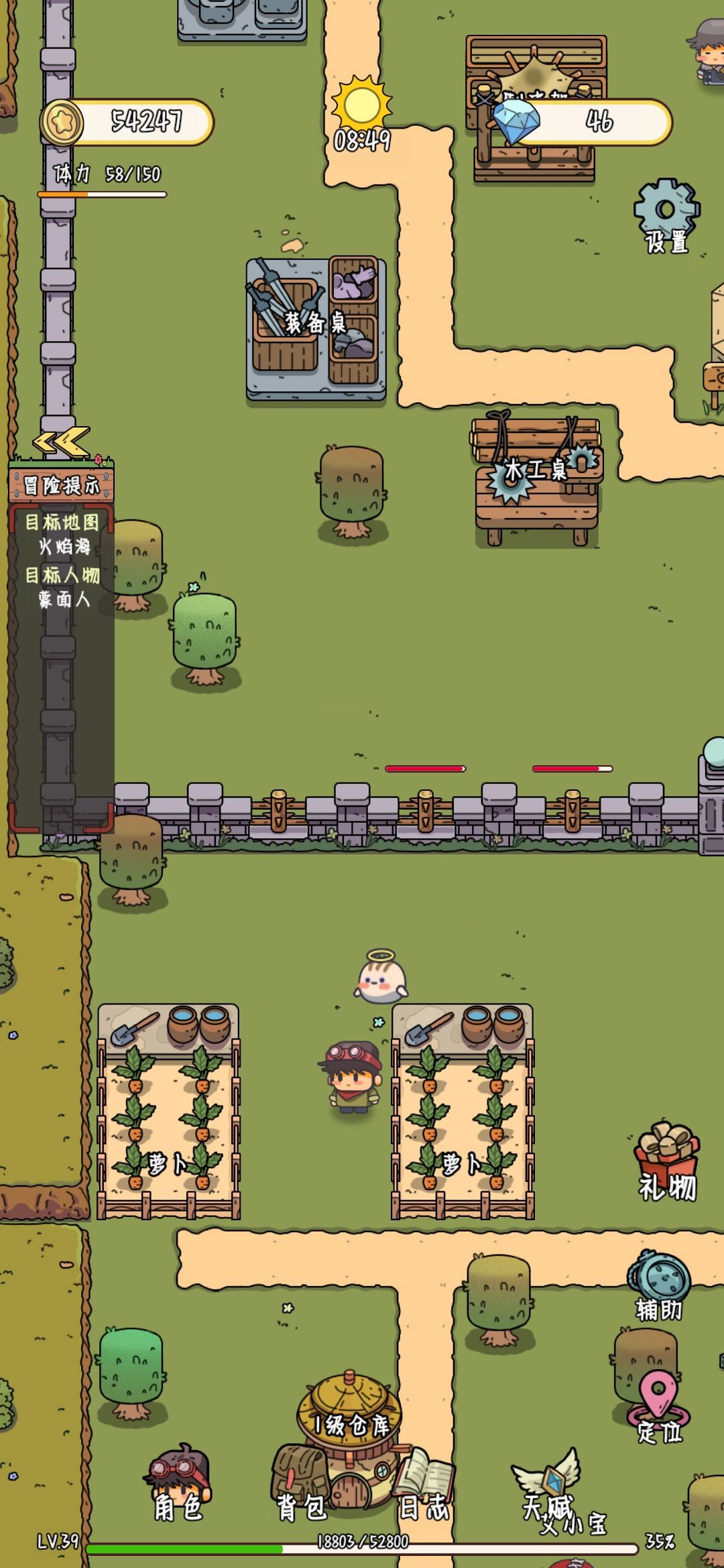 ③等天亮了,先把耕地收了又再种回去,先去商店把种的东西卖了(不要都卖了,留一点自己用),然后去商人村卖了晚上砍的树再去跑任务