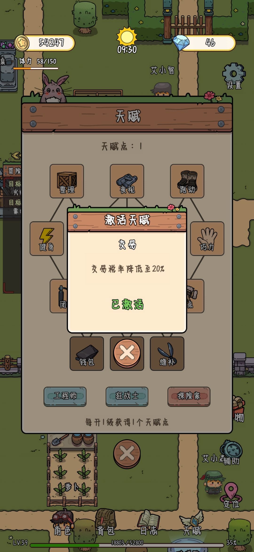 这里有个天赋很重要,前期可以先点了交易这个天赋,卖东西的时候比较赚钱