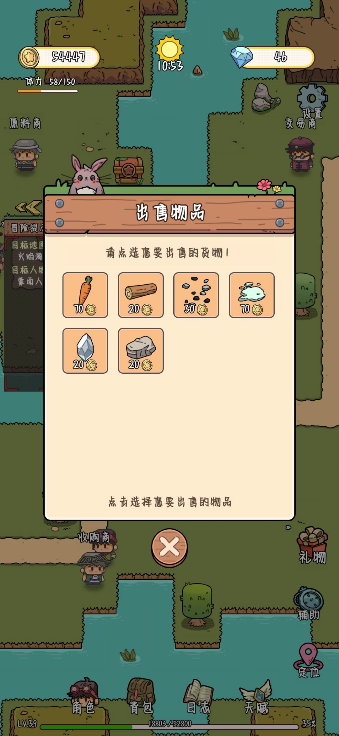 2.等商人村开了就可以卖一些资源了,比如木头和石头(这里前期会缺石头和木板,赚不了什么钱)