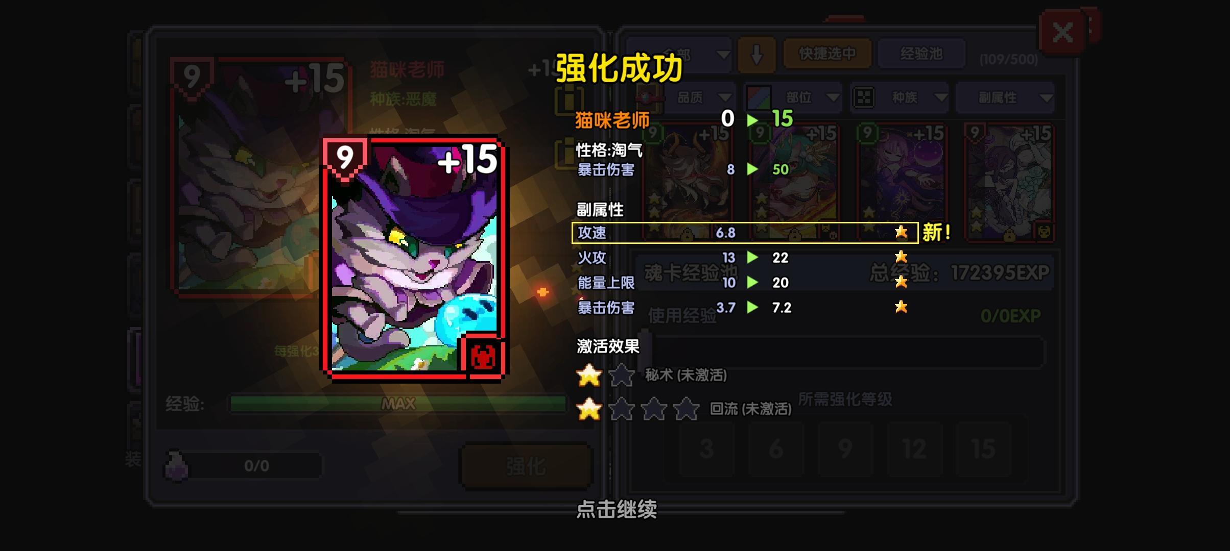 强化是需要在15级满级前单条属性强化到2颗4颗星开启下面特效,一张完美的卡是需要把星星全强化到自己想要的那条属性上,而且主属性要对,一个魂卡系统能插很多张卡,整体会有各种加成。