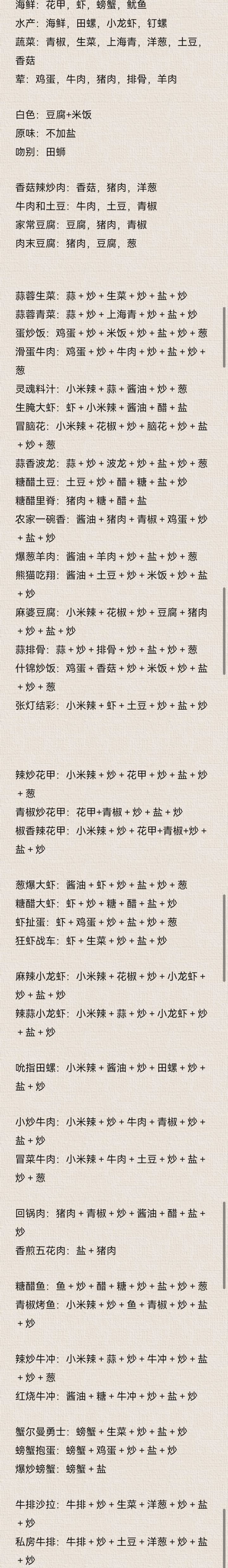 我知道和搜集到的菜谱,可能不全 尽力了 家人们~🙊🙊🙊