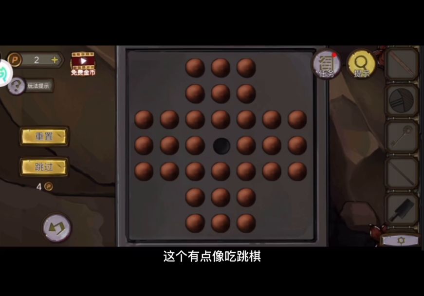 5。棋子只能隔着另一个棋子走到空格,中间这个被隔着的棋子就会被吃掉。