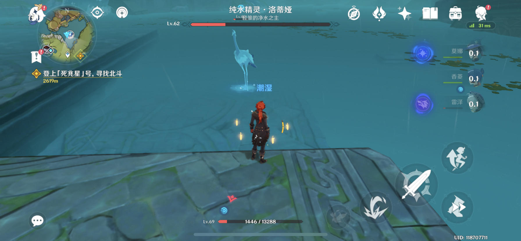由于是新手练度不高 没有练弓箭角色 导致连出三把飞鸟重开三次 换上了雷泽蓄力打鸟 最后一波出了丹顶鹤 这个东西 你靠近就后退 退到了水里 结果就这么卡着 我打不到它 它一直站着远程攻击我 拖到Boss狂暴 剩个莫娜逃到水里躲过一劫 然后发现距离过远这个丹顶鹤会向你靠近 想要放弃的心 又燃起希望 但是跑到面前它又后跳回水里