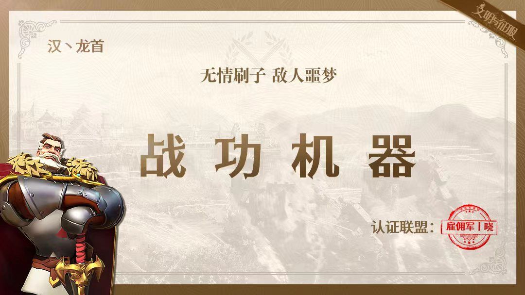 【雇佣军丨晓】战功机器:汉丶龙首盟主评语:无情刷子,敌人噩梦!