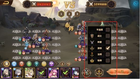 在全新版本里,战斗场上还有一个重要的变化,那就是神器和专精可选择了。