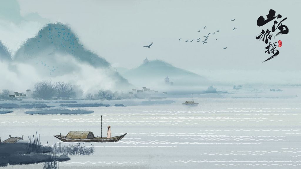 (山河旅探的国风水墨风格)