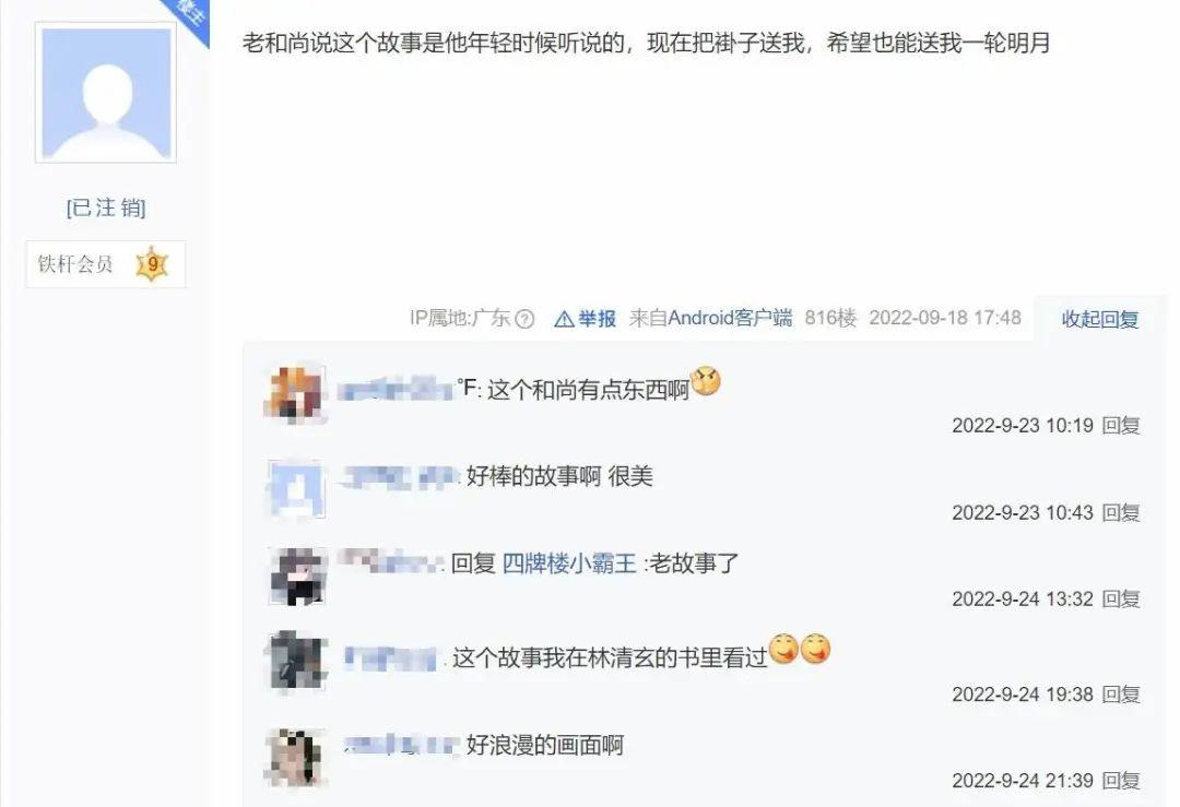 “我一直记得这个事情,今天把这个故事给老哥们复述,希望那和尚的明月也能送给到老哥们这里”