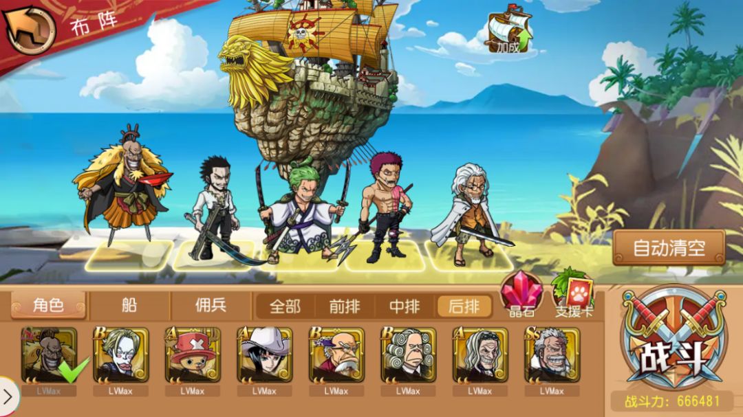 2、加金狮子自身暴击值:作为一位辅助,金狮子对于暴击值的需求其实并不大,斩击系的中排人物(大剑豪·米霍克、卡塔库栗、佐罗十郎、新世界·佐罗、白胡子)无一不是高爆发人物,并不太需要金狮子去爆发。