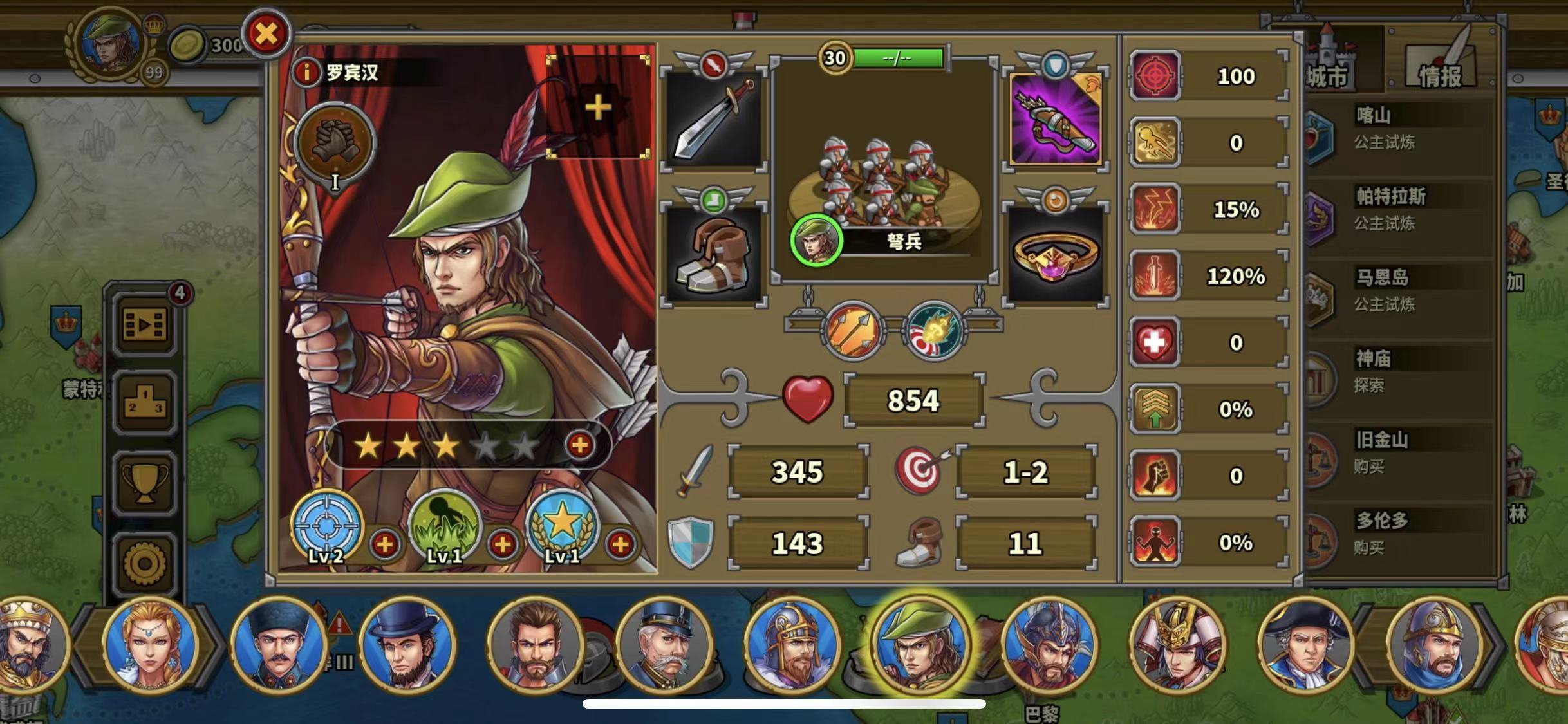 第二关:亚瑟、威廉·华莱士、罗宾汉、查理大帝、埃及艳后